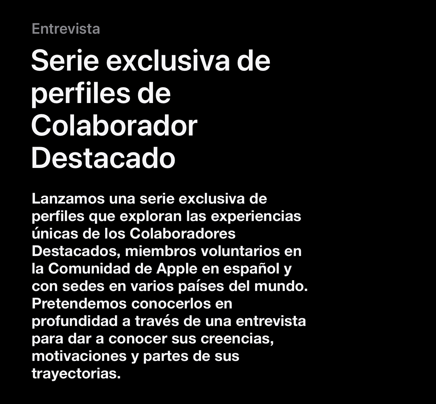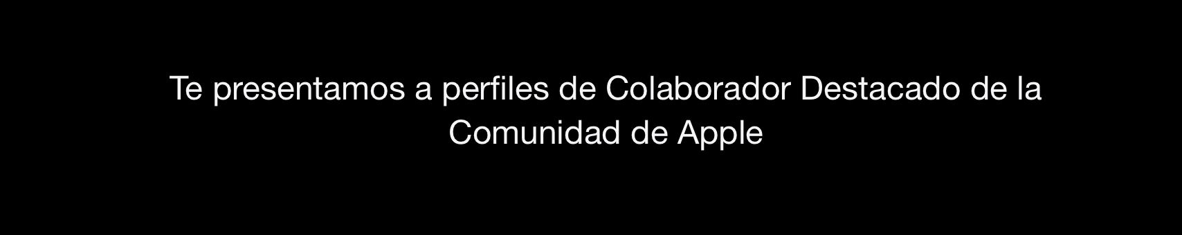 Serie exclusiva de perfiles de Colaborador Destacado. Para más información sobre los Colaboradores Destacados de la Comunidad de Apple visita Colaboradores Destacados.