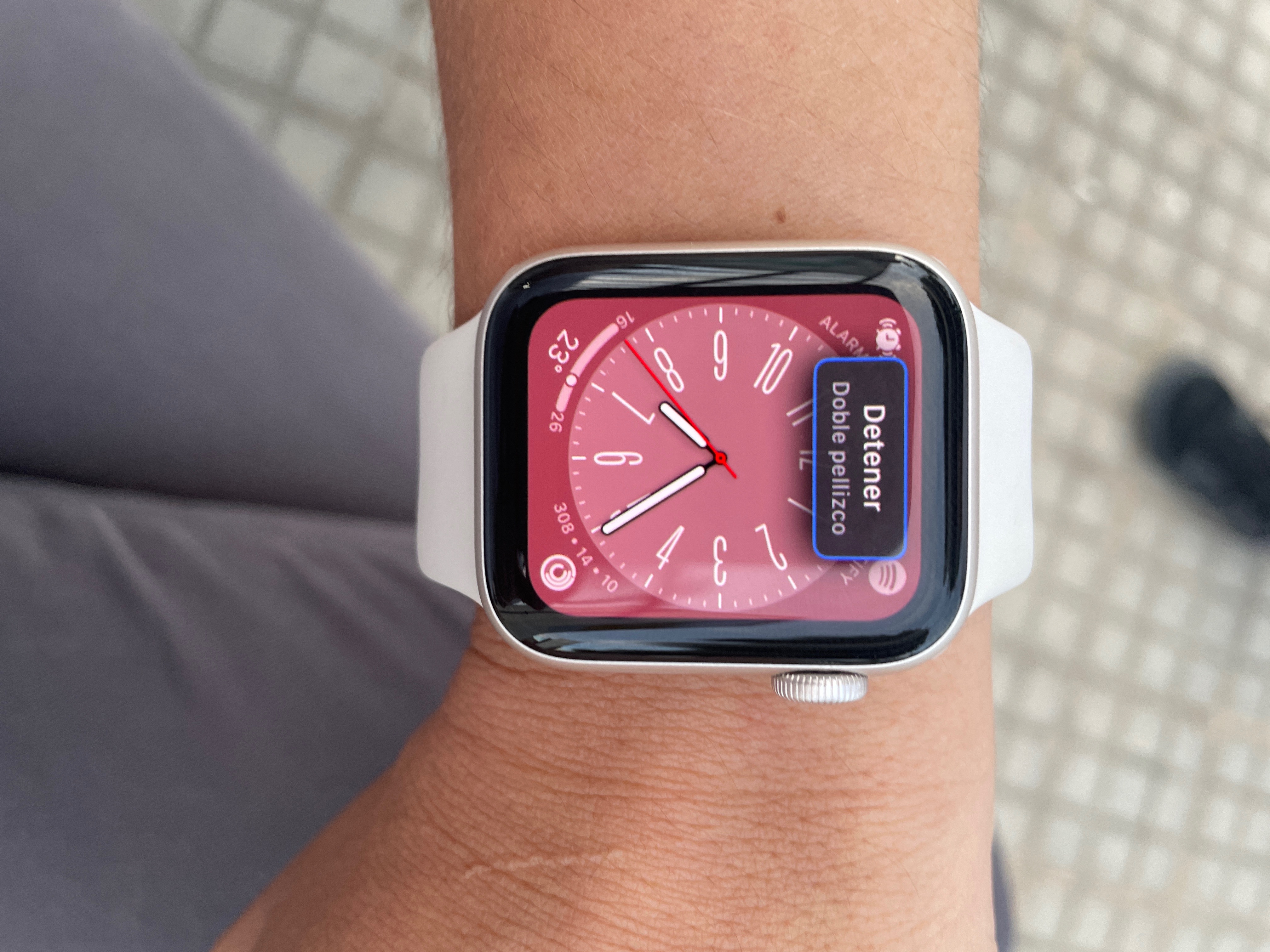 Cada vez que se activa la pantalla del Watch SE sale la notificación “Detener. Doble pellizco”.