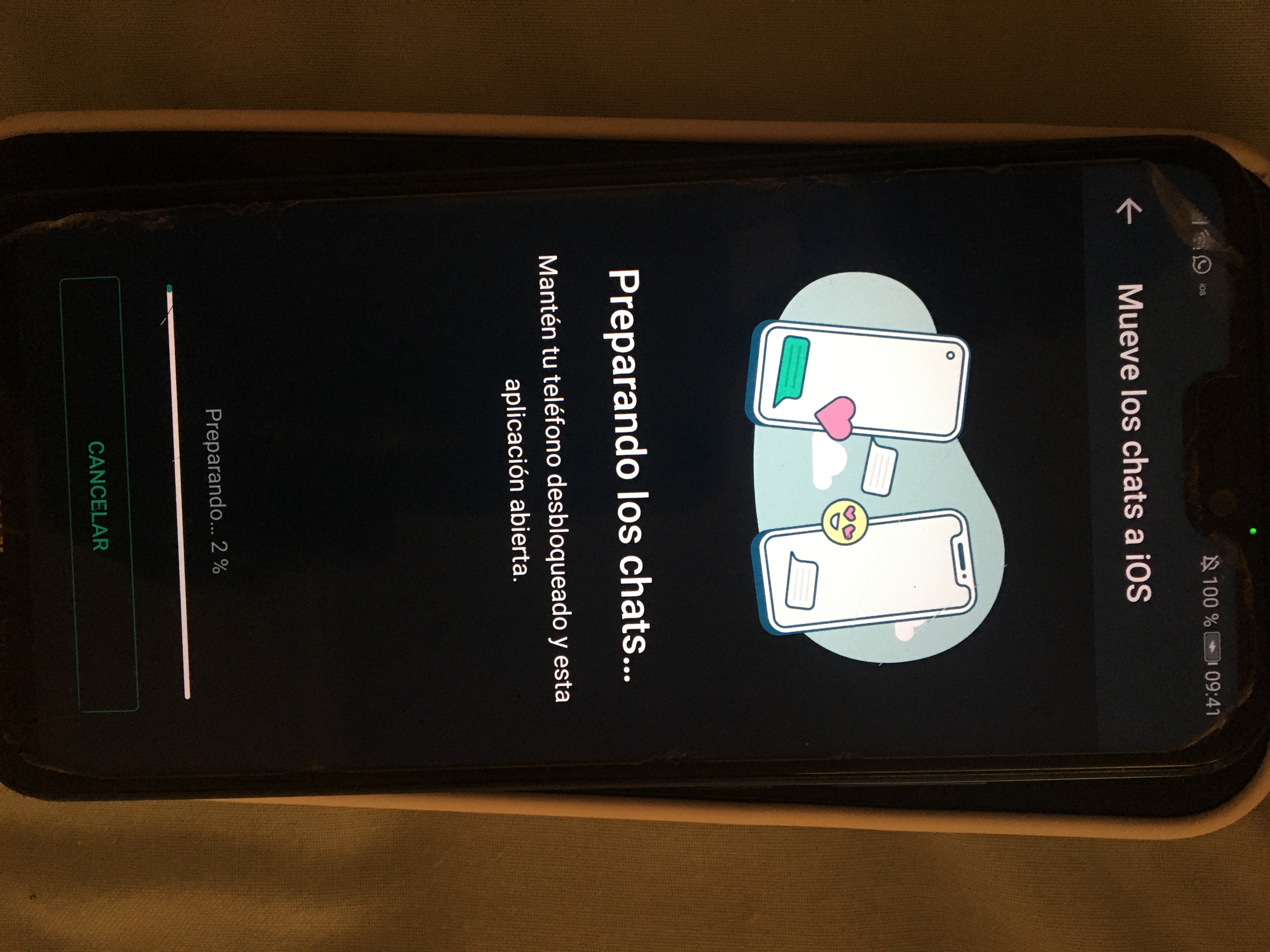 Hola, recientemente adquirí un iphone, al momento de trasladar “WhatsApp” de mi dispositivo Android, el proceso llega al 2% y luego arroja un mensaje diciendo que el proceso ha sido cancelado, cómo puedo solucionarlo?