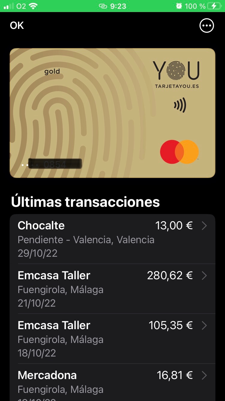 En la App de Wallet o Cartera, una de mis tarjetas ha dejado de registrar el historial de movimientos