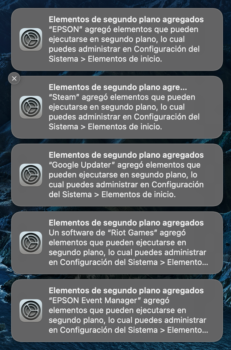 Notificación "Elementos de segundo plano agregados" cada inicio de sesión