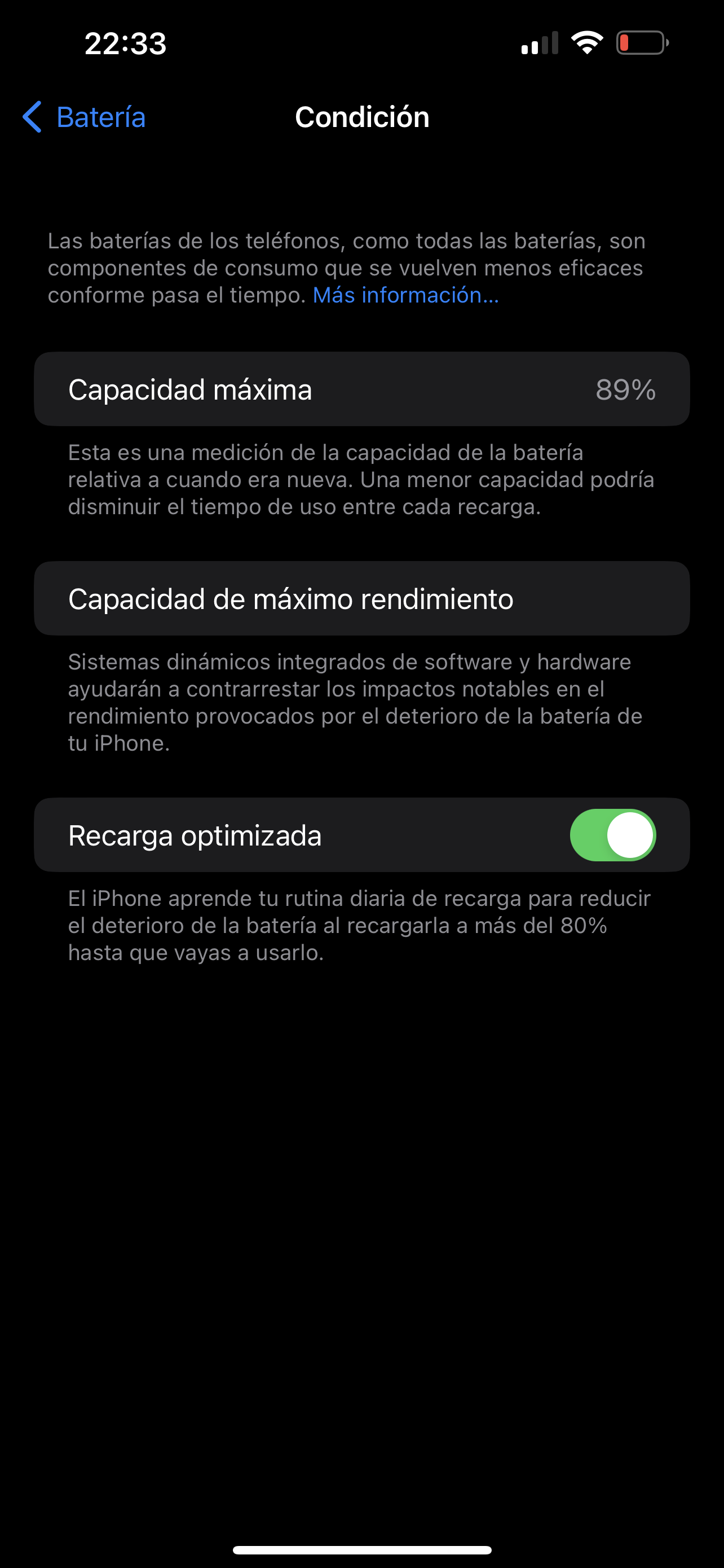 Si te refieres al porcentaje de la capacidad máxima de la batería, es normal que disminuya con el uso y tiempo. No es posible aumentar la capacidad máxima a menos que reemplaces la batería. Te comparto los siguientes recursos que te hablan más sobre las baterías de un iPhone y que puedes hacer para maximizar la duración.