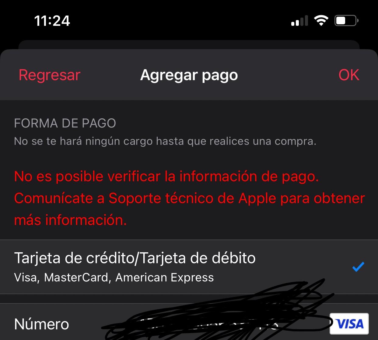 Comprueba que el país que tengas indicado en tu Id de Apple coincide con el país emisor de tu tarjeta de crédito.