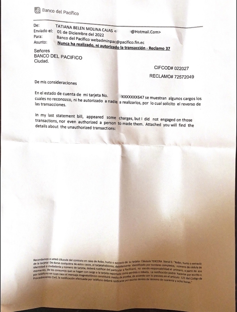 Hola necesito que me ayuden a recuperar unos valores que fueron pagados ilegalmente con mi tarjeta de crédito