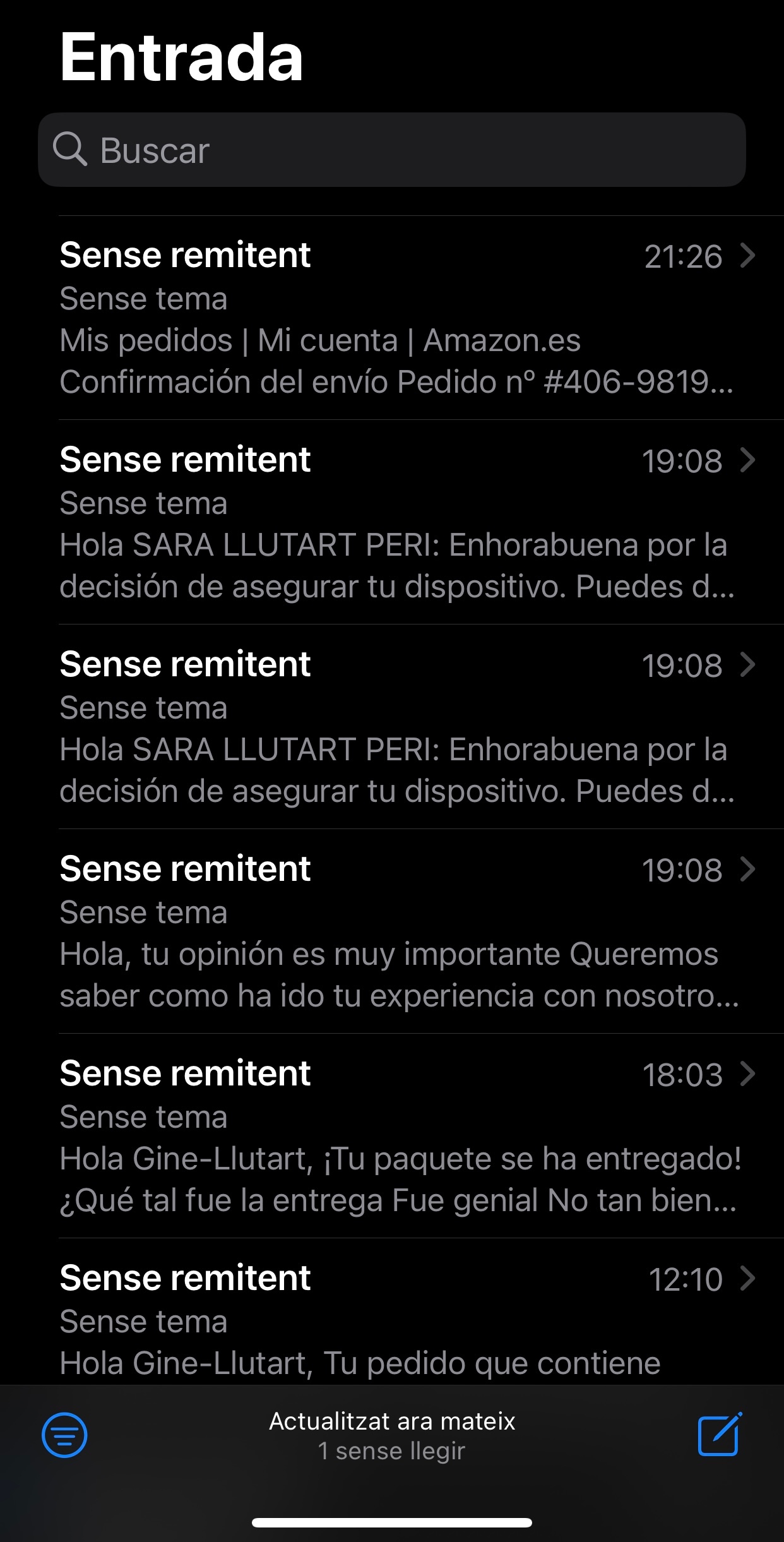 He reinstalado MAIL pues se cerraba automàticamente y así me lo recomendava el tutorial . Ahora no aparece el nombre de los remitentes al abrir la app hasta que no abro el correo