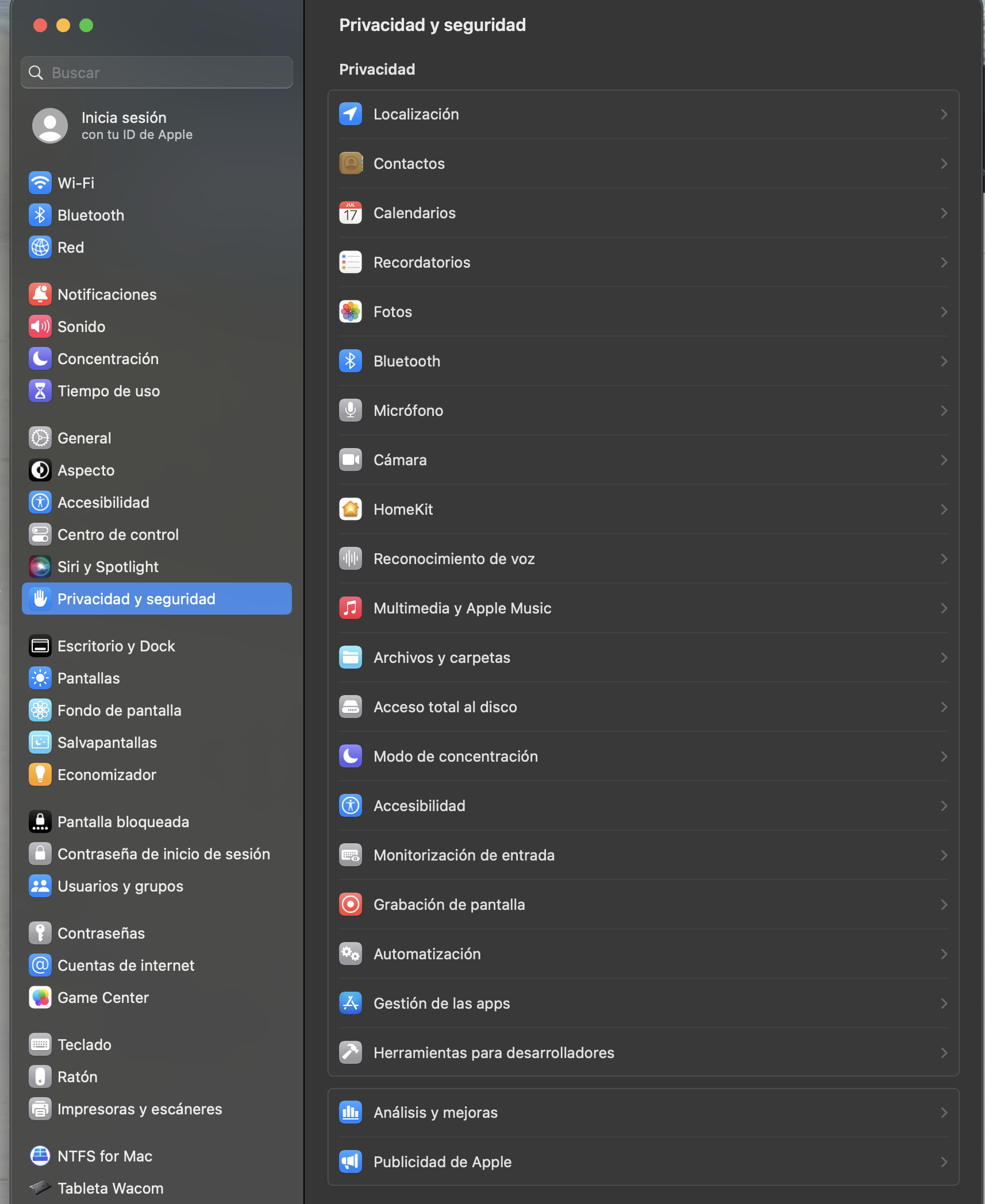 Aquí tienes algunas cosas que pueden ayudarte a localizar el ajuste. En primer lugar, parece que no has iniciado sesión con tu Apple ID. Por favor, hazlo cuando sea posible. Además, parece que en los ajustes se envió una captura de pantalla cuando el Mac tenía seleccionados los ajustes de "Privacidad y seguridad". Sin embargo, la opción para desbloquear el Mac con el Apple Watch se encuentra en la sección "Touch ID y contraseña (o en o en Login Settings)".