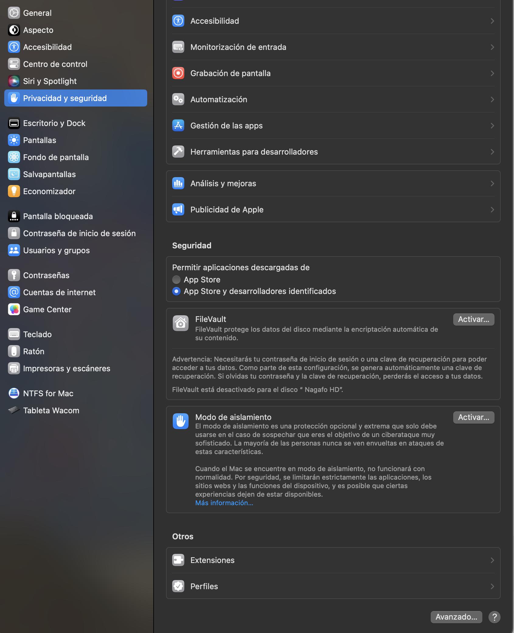 • La Mac tiene Wi-Fi y Bluetooth activados.