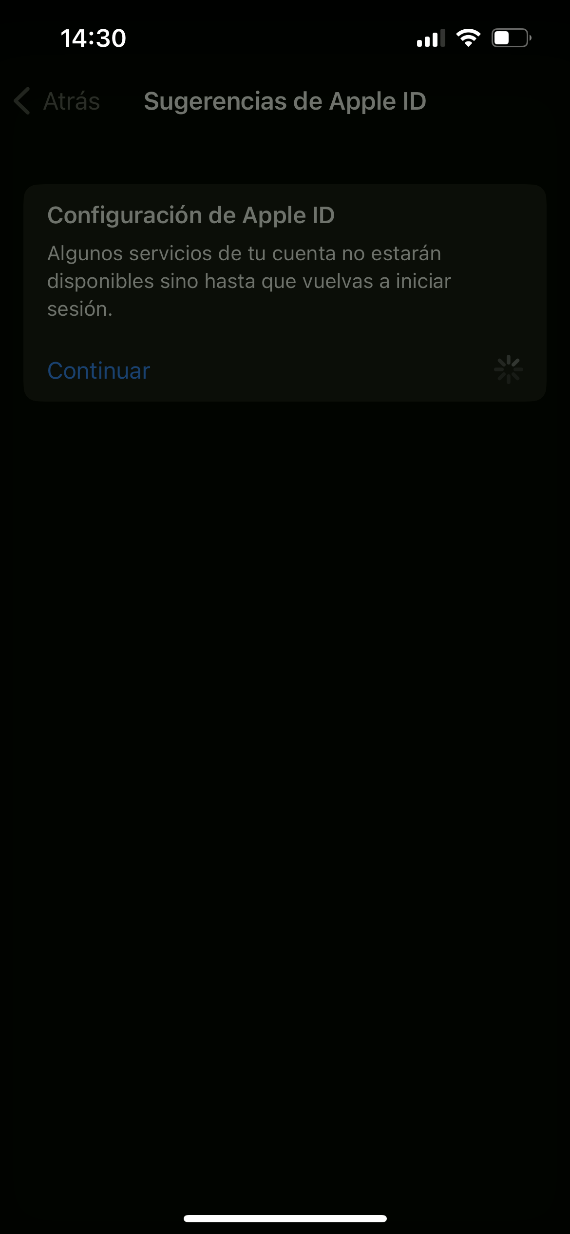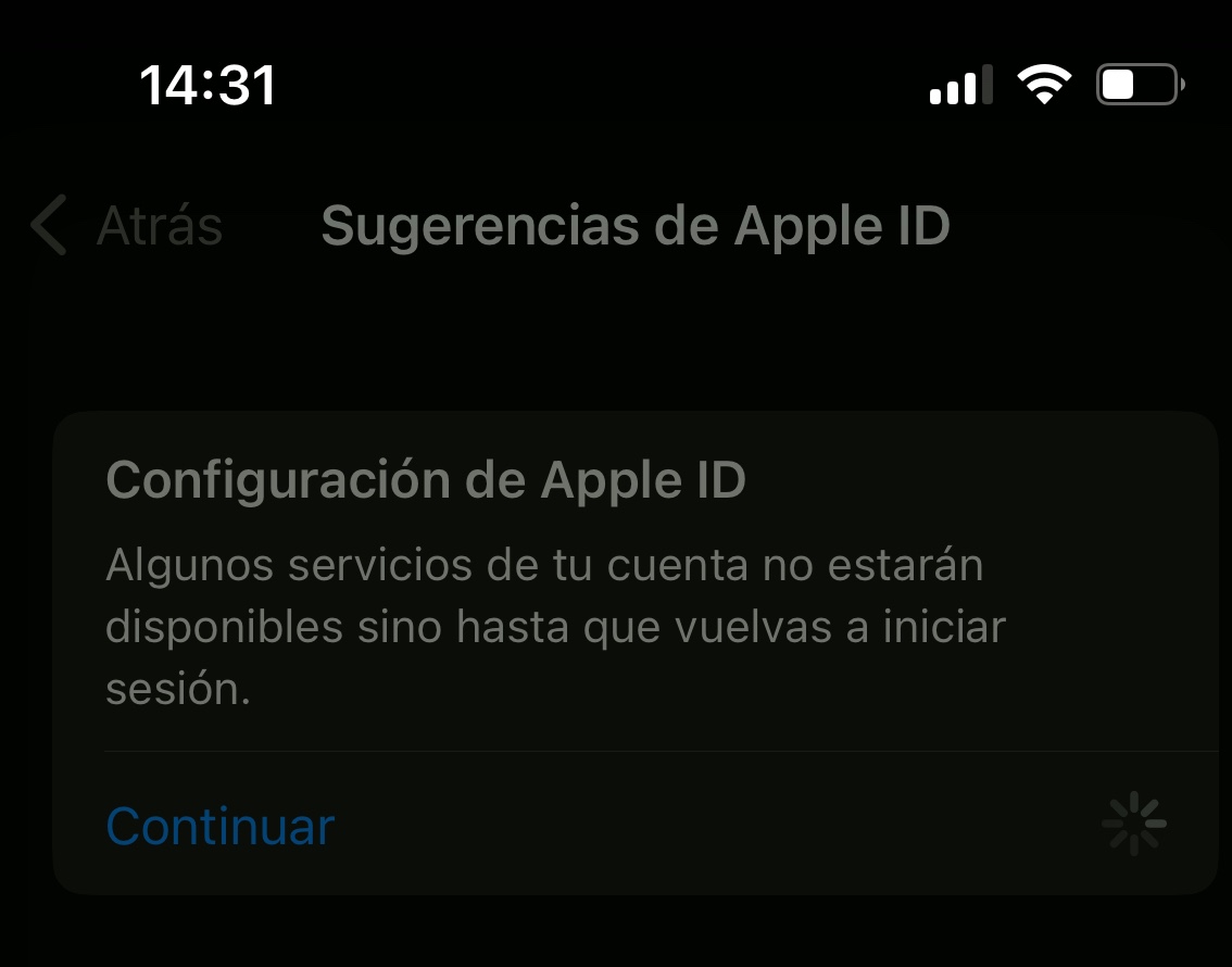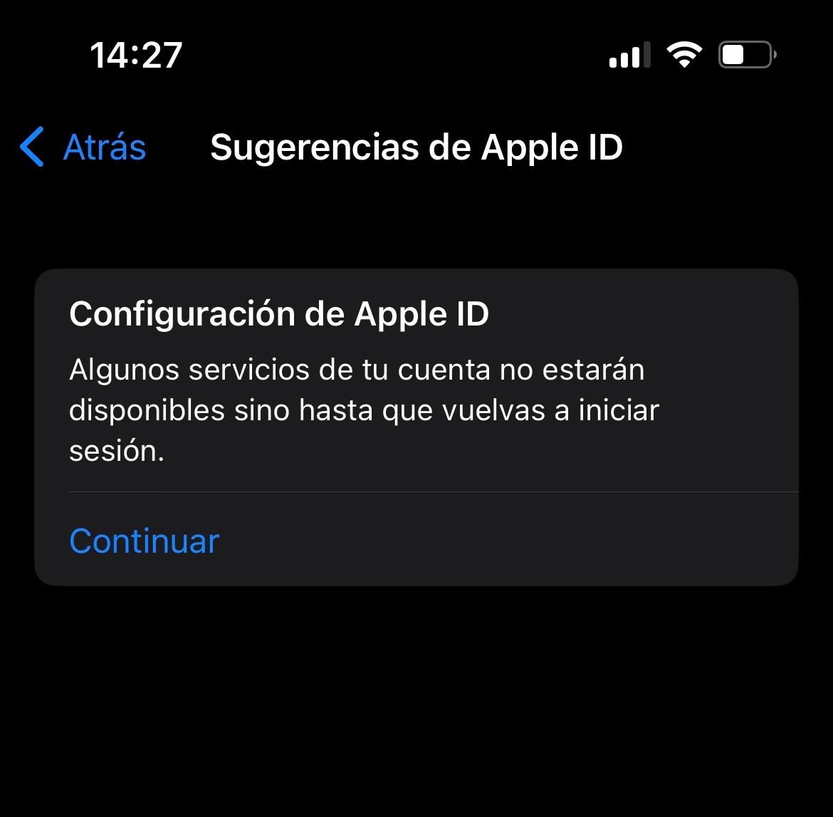 Configuración de Apple ID no estará disponibles hasta que vuelvas a iniciar sesión