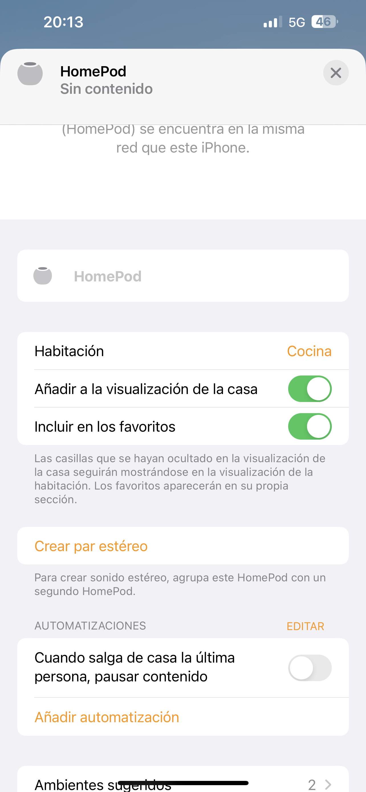 Esta misma mañana acudí a la segunda casa a reiniciar el HomePod, por si eso fuera el problema. Todo sigue igual, pero añado un nuevo terminal IPhone de mi mujer.
