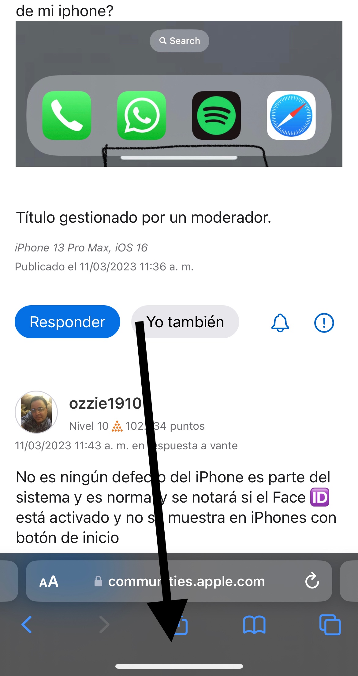 Siempre me aparece la barrita gris que sale en la pantalla de bloqueo, me aparece en pantalla de inicio y en todas las aplicaciones, y me he fijado que en otros iphones, no. Será defecto de mi iphone?