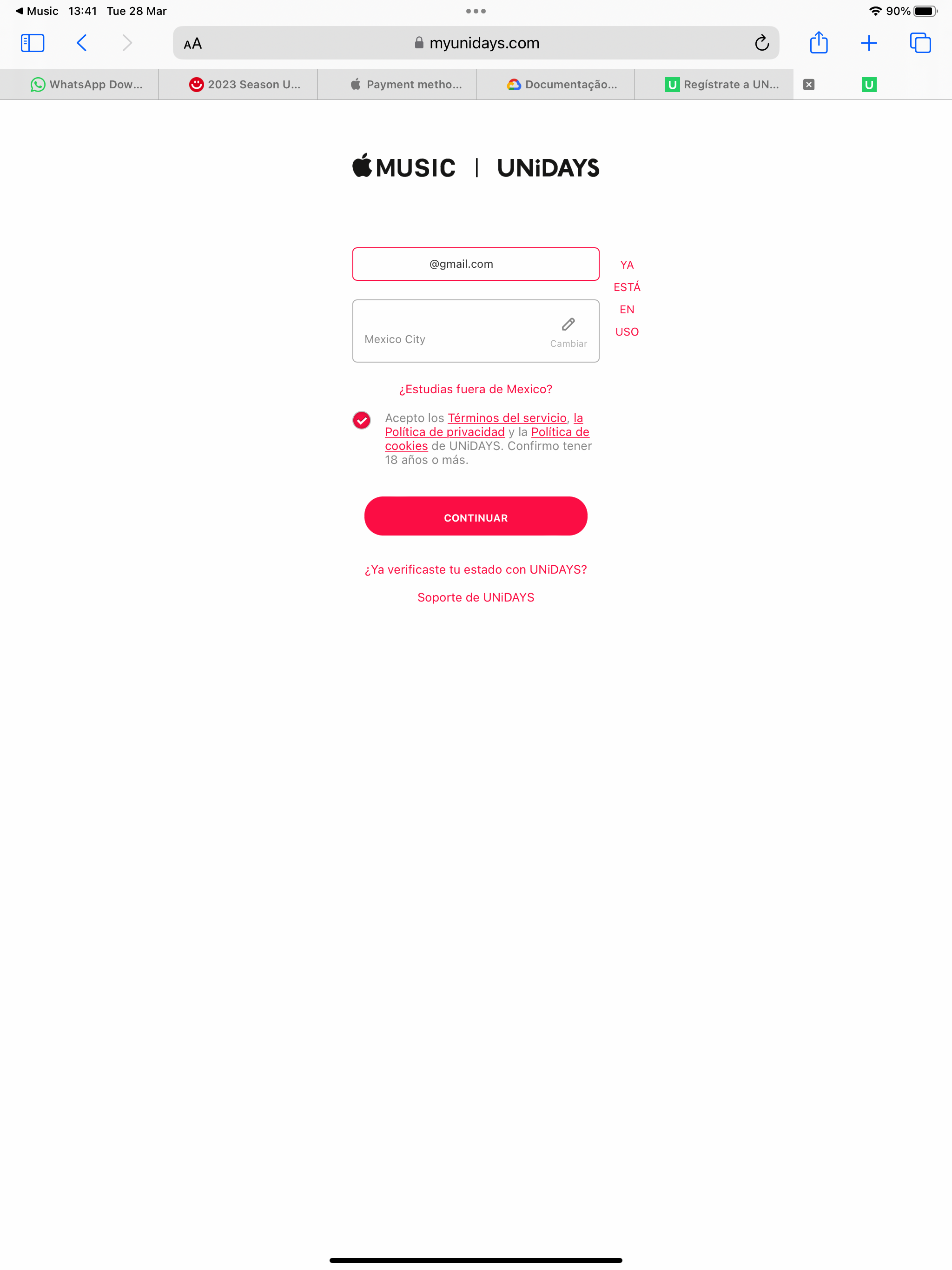 Si usaste tu cuenta UNiDAYS anteriormente con tu otro Apple ID para obtener una suscripción de estudiante para Apple Music, es por eso que te sale ese mensaje. Recomiendo ponerte en contacto con el soporte de UNiDAYS para averiguar si hay problemas con tu cuenta. Contacta al soporte de UNiDAYS usando el siguiente enlace: