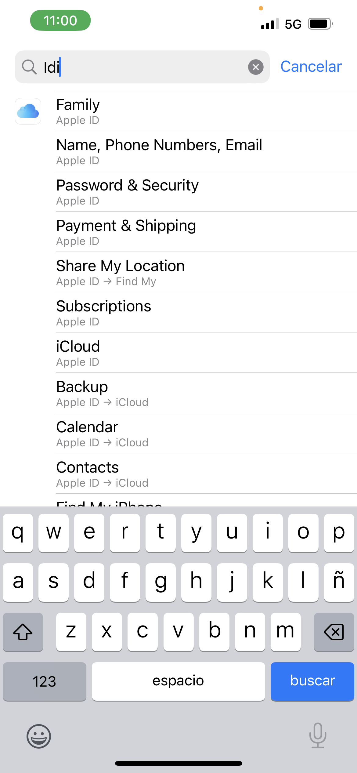 El otro día cambie el idioma de Español a Inglés, luego volví a cambiar a Español y eliminé el otro idioma, el problema es que desde el otro día aunque todo aparece en Español la búsqueda en Ajustes solo me funciona en Inglés, los resultados salen en Inglés pero luego una vez abiertos en Español.