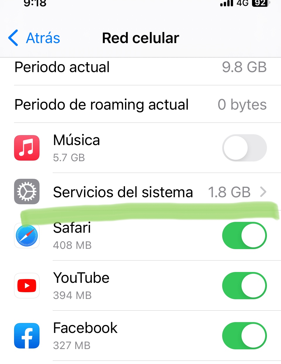 Consumo excesivo en Servicios del sistema iPhone