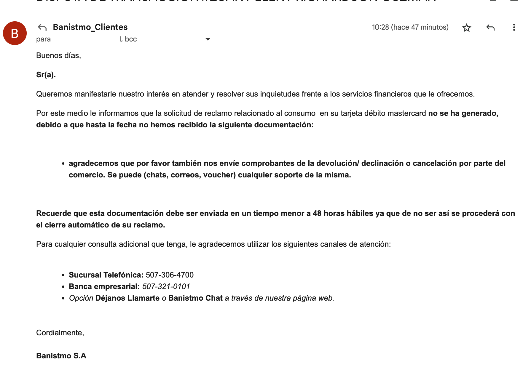 El día de hoy me escribieron y me dicen esto:yo no tengo nada donde confirmar que el reembolso se hizo.