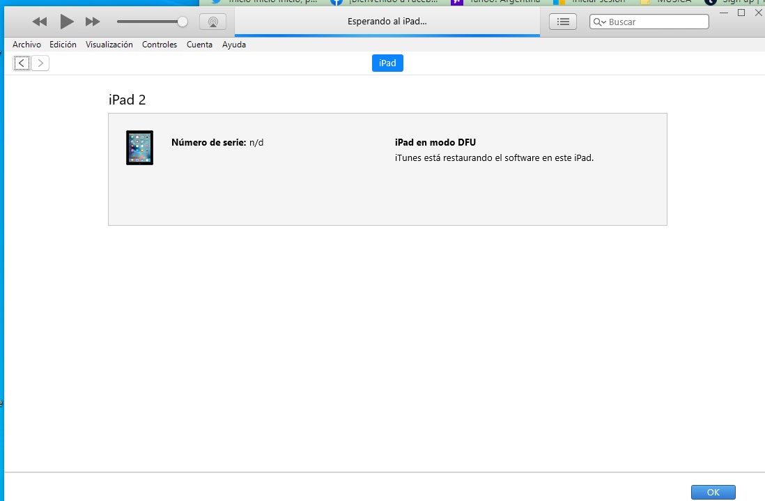 Mediante iTunes + cable USB, coloqué el iPad para restaurar -está en modo DFU- y el proceso queda por horas (colgado) con la leyenda "Esperando el iPad..."