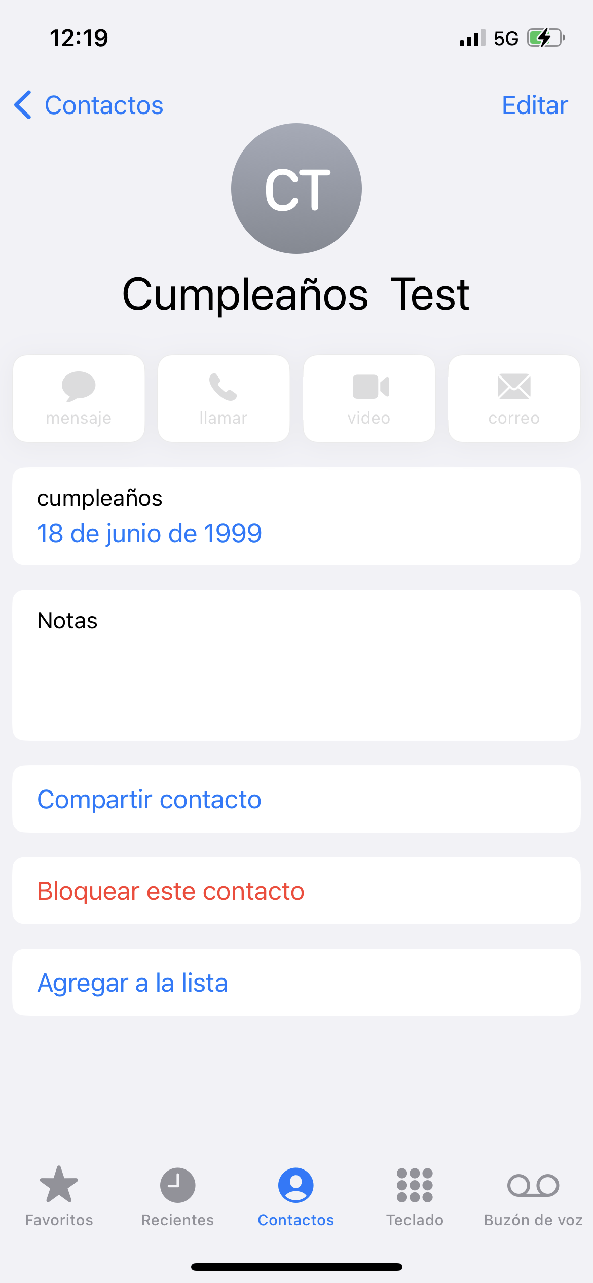Ahora ya tengo en mi agenda en mi contacto, el cumpleaños con fecha 2023, he vuelto a entrar en la agenda y en el contacto y he eliminado el 2023 y he dejado la fecha solo y ha vuelto a borrármela. He vuelto a entrar y he puesto la fecha otra vez completa 24/12/2023. Y me la ha vuelto a coger bien y no la borra.