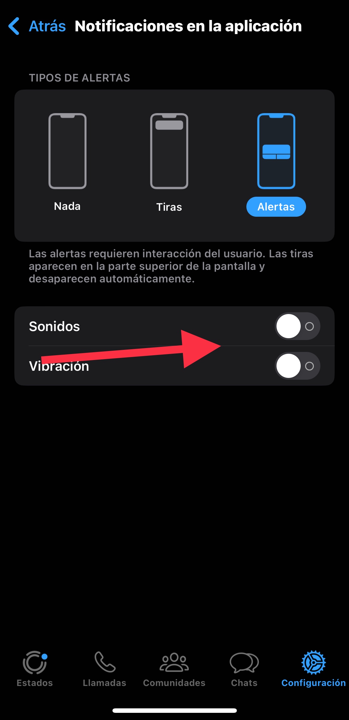 Desactívelo desde los ajustes de WhatsApp /notificaciones/notificaciones de la aplicación es póngalo así , no es Apple que corresponde darle soporte a esa app porque no es un inconveniente de su iPhone