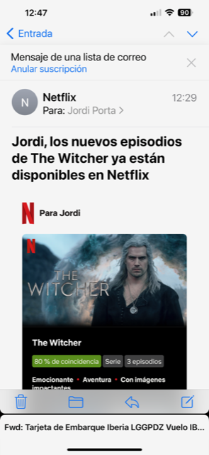 NO PUEDO BORRAR EL MENSAJE : "Fwd: Tarjeta de Embarque de IBERIA LGGPDZ..." QUE ME APARECE EN TODOS LOS CORREOS QUE RECIBO Y ABRO