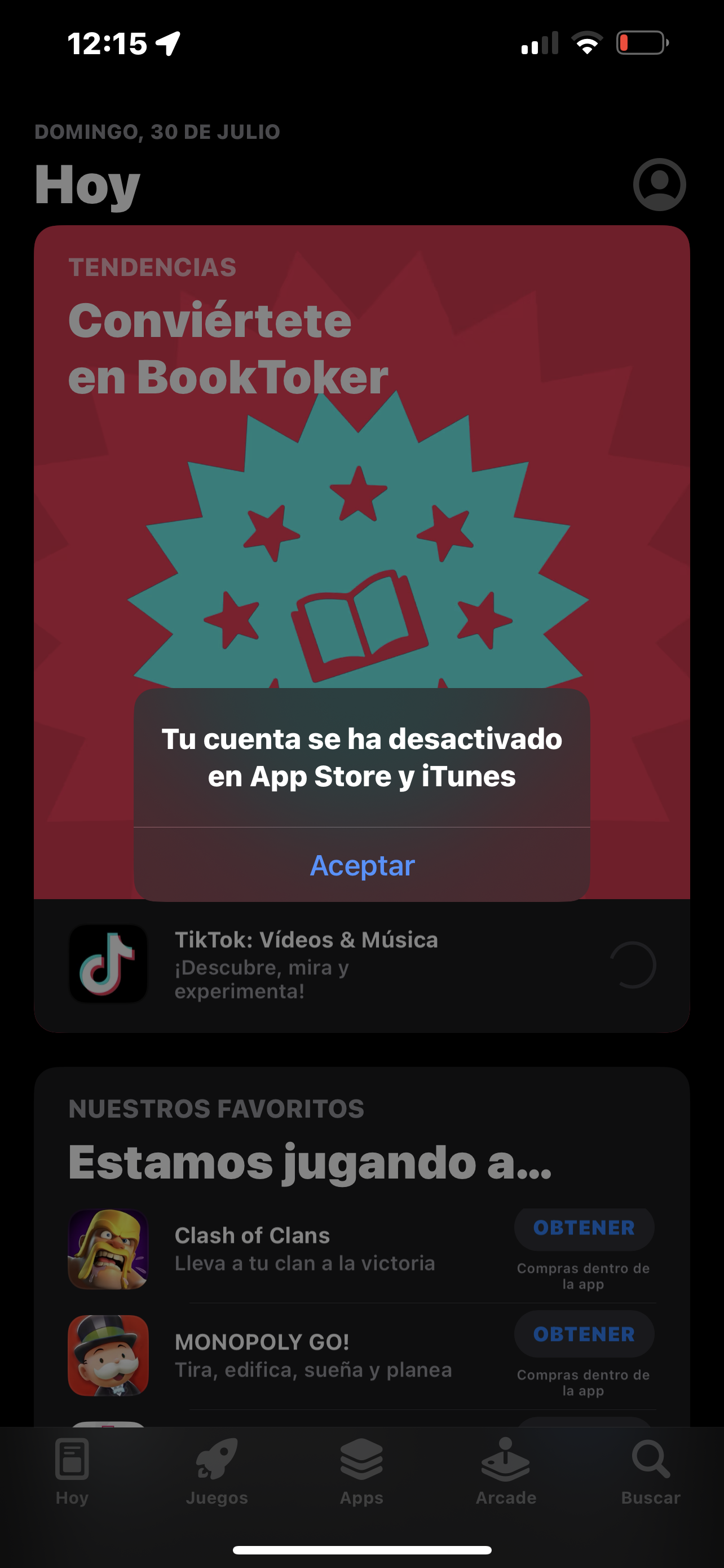 Si ves un mensaje en el que se indica que tu cuenta se deshabilitó en App Store y iTunes, comunícate con el Soporte técnico de Applepara obtener ayuda.