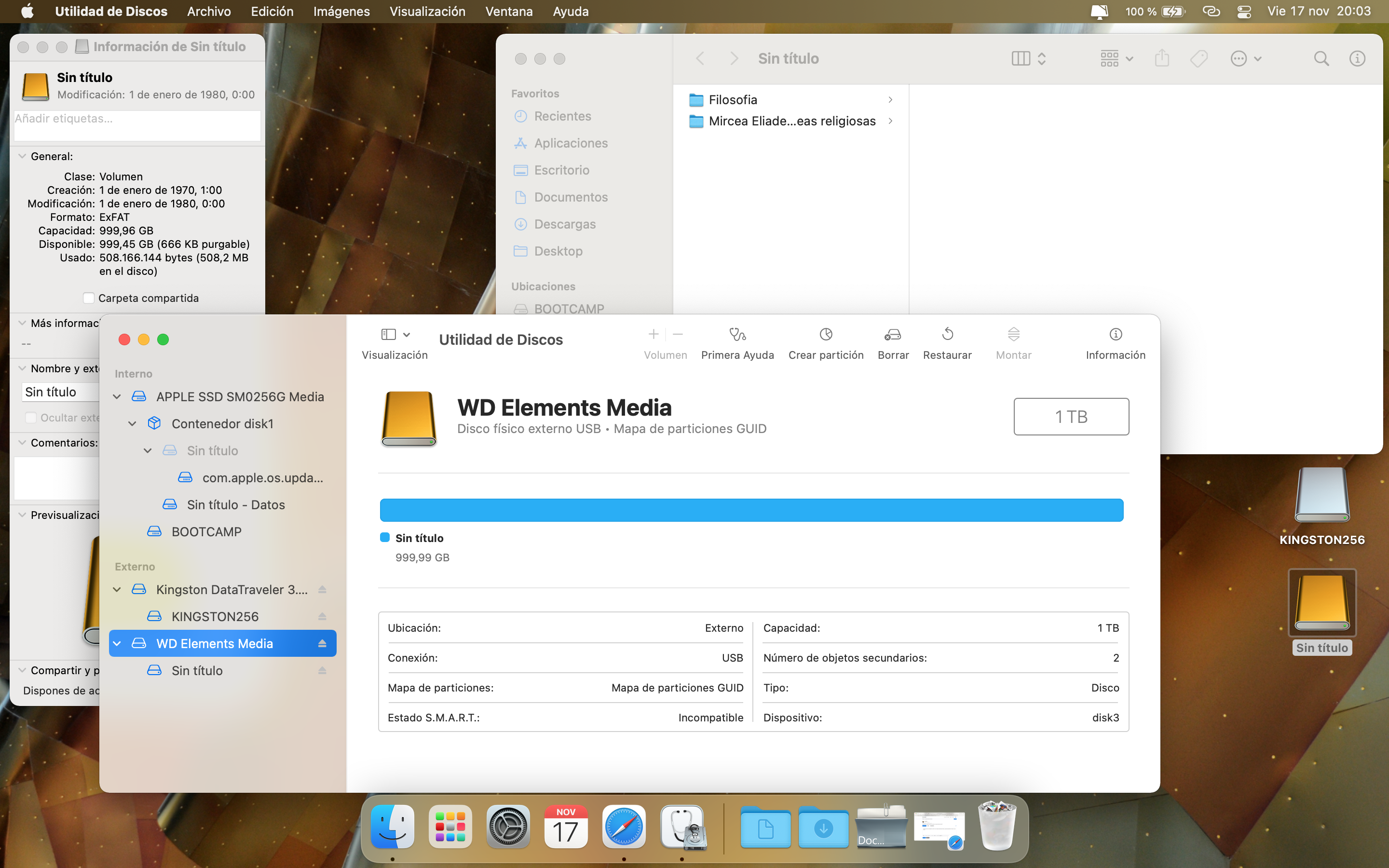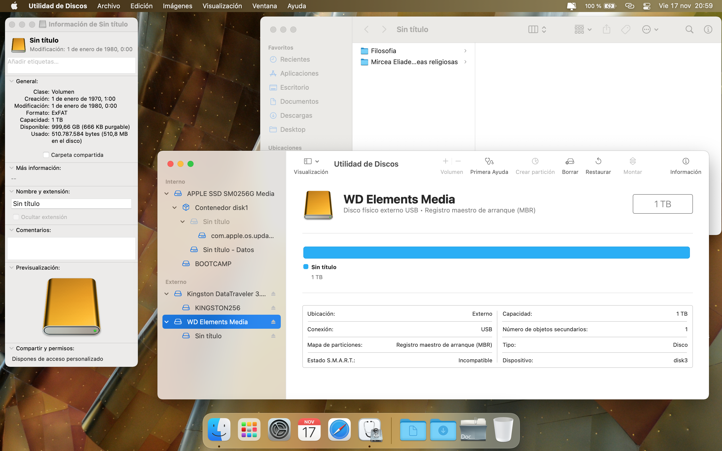 Hola, me estoy encontrando con un problema que nunca me había pasado antes (o al menos nunca había sido consciente de ello). Finder no me muestra algunos archivos de mis carpetas, ni un pendrive ni en un disco externo. Son archivos que no están ocultos y que realmente sí están ahí, ya que Windows sí me los reconoce sin problema, pero que en Mac están desaparecidos. Es más, la carpeta en Finder me dice que tiene 0 kbytes, como si estuviera vacía. He intentado realizar la búsqueda con Spotlight pero nada. He reparado Spotlight por si fuese ese el problema, pero tampoco. He reiniciado Finder, el propio Mac, he entrado en modo seguro... y ninguna fórmula funciona. Luego he usado tanto el pendrive como el disco externo en Windows y ahí sí que aparecen todos, no me salen carpetas vacías ni nada similar. La historia es que me he fiado siempre en que las copias de seguridad las estaba realizando sin problema, pasando todo el contenido a mi servidor NAS, y ahora veo que no están esos archivos porque Mac no los mostraba (y por ende no los pasaba).