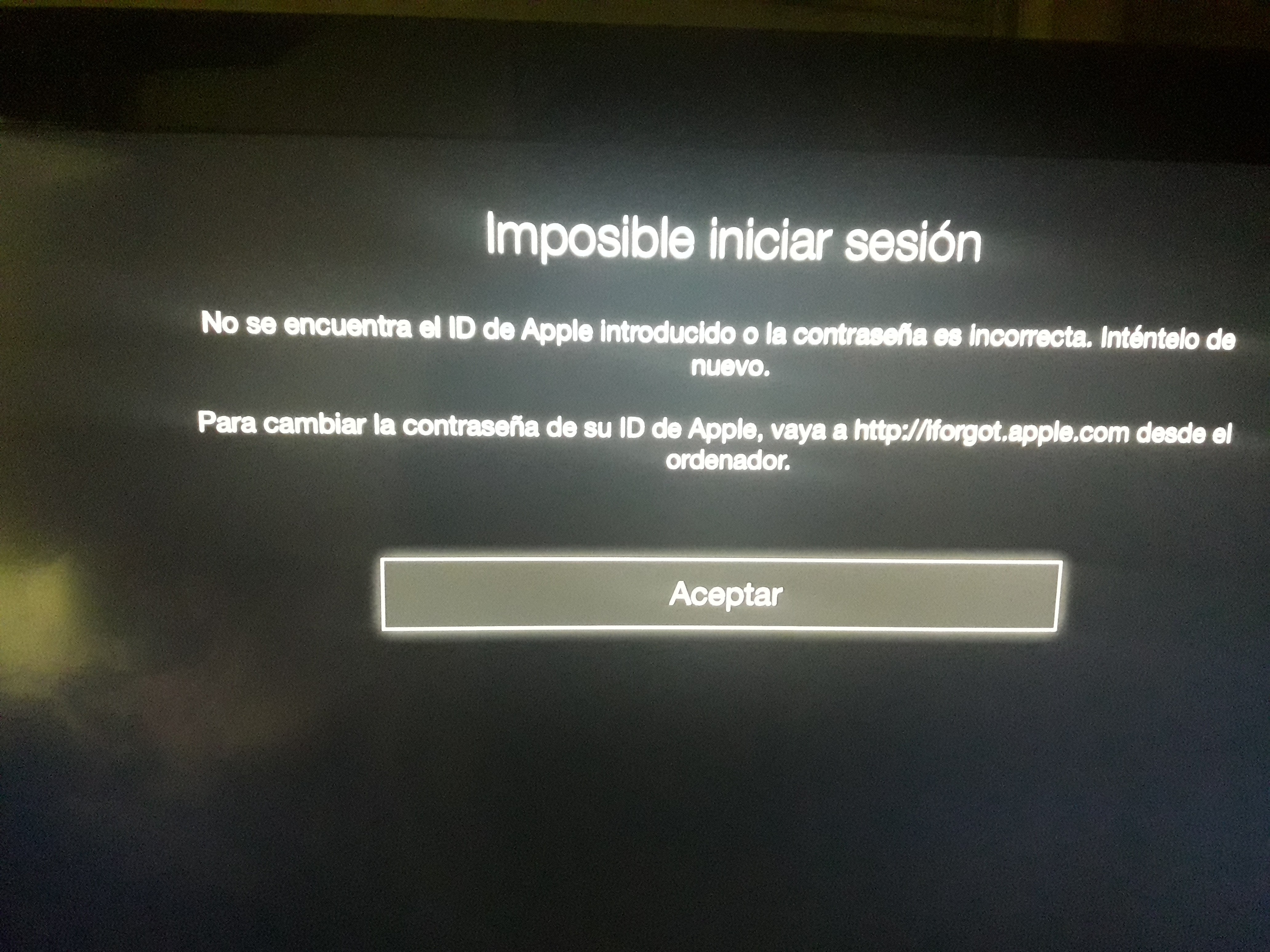 Hola mi nombre es Agustin y el problema que tengo es que quiero activar la opción de compartir en casa en mi Apple TV de 3ra generación. Le ingresó el Apple ID, la contraseña correcta y el código de verificación que me llega por SMS de 6 dígitos. Cuando quiero iniciar me dice "Imposible iniciar sesión. No se encuentra el ID de Apple introducido o la contraseña es incorrecta. Inténtelo de nuevo".