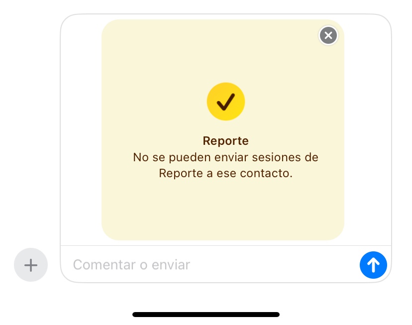 Quiero enviar un reporte con la nueva actualización de iMessage pero me sale que no puedo enviar secciones de reporte a ese contacto