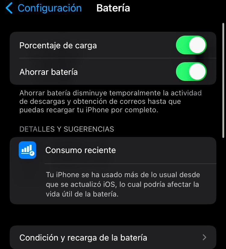Tu iPhone se ha usado más de lo usual desde que se actualizó iOS, lo cual podría afectar la vida útil de la batería.( Ya hice el reinicio Forzado y no se quite ese apartado) tengo el IOS 17.0.2 y es un ¡phone SE tercera generación.