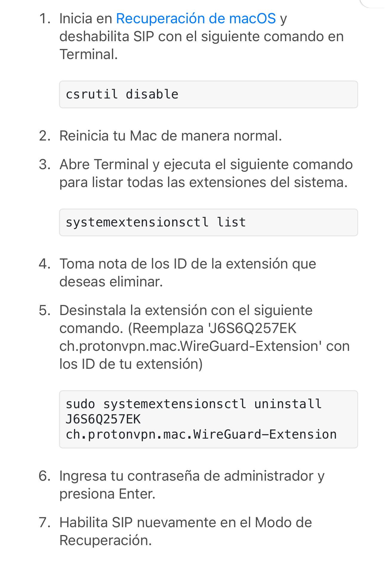 Luego pon solo systemextensionsctl uninstall enseguida el ID y luego el NOMBRE