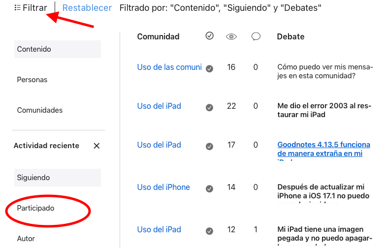Hola, como consultar los mensajes que haces en la comunidad de Apple ?