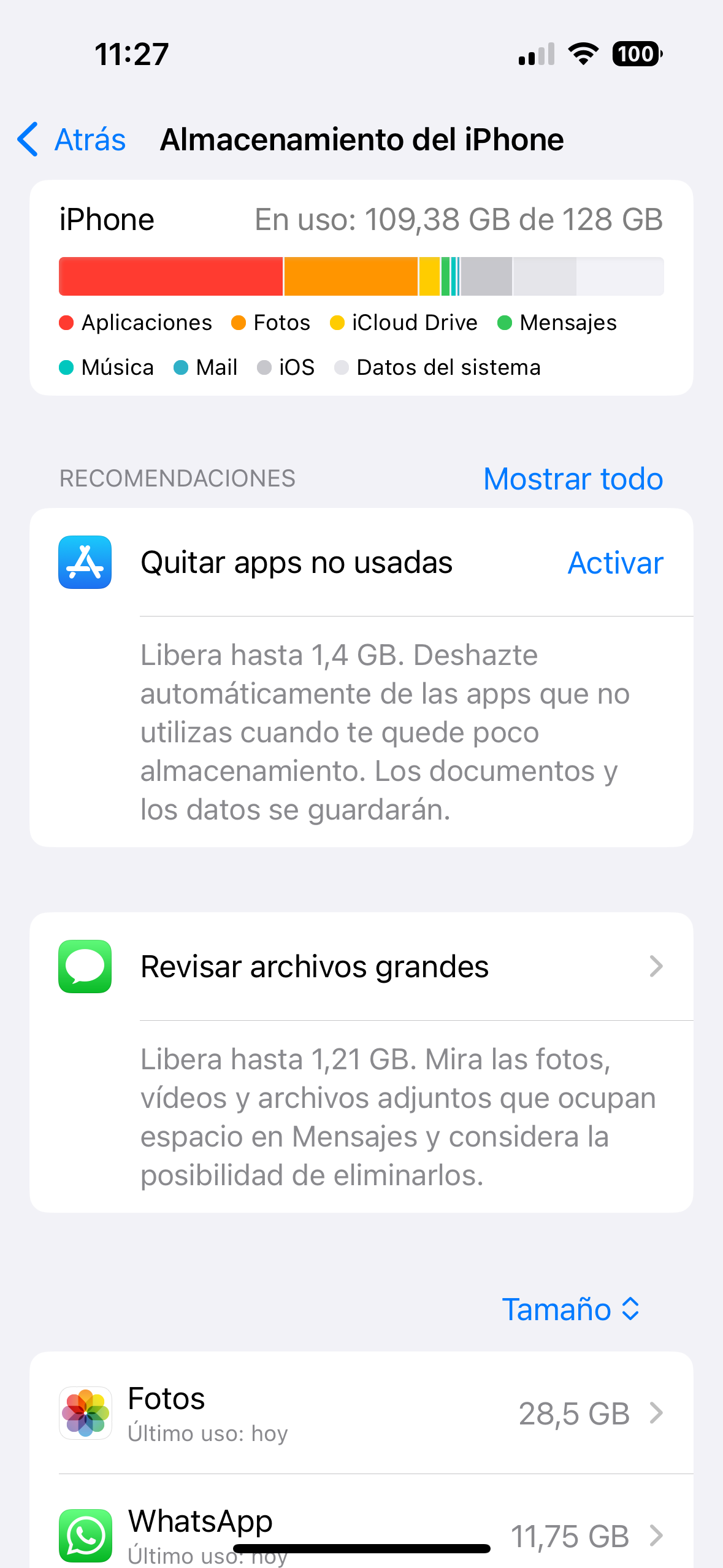 Buenas, necesito ayuda para solucionar este problema. He vaciado las fotos y videos de mi iPhone 14 Pro ya que solo tengo 128GB y se suele llenar rápido. Sin embargo, habiendo borrado todo (también la carpeta de recién eliminados y ocultos), aun así, segun el movil, la galeria me está ocupando 30GB de mi memoria. No 30MB, tampoco 300MB, sino 30GB cosa que me parece exagerado.