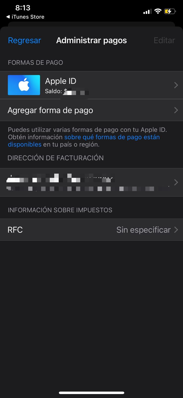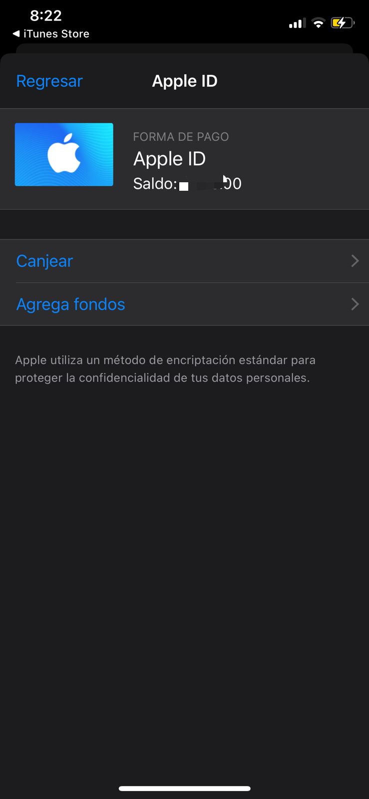 compre una tarjeta de regalo iTunes y pero no me permite comprar con el saldo, me pide registrar un método de pago y aun que en el menú de opiciones de pago aparece el saldo como disponible pero al seleccionar lo como método de pago solo el menú canjear o agregar fondos.