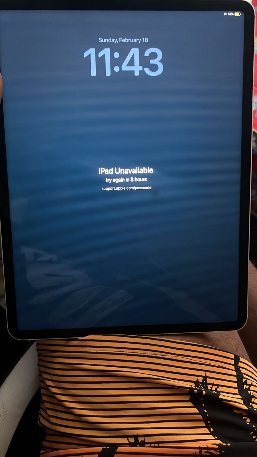 cabe destacar que el iPad se encuentra deshabilitado por 8 horas por intentar el código varias veces!