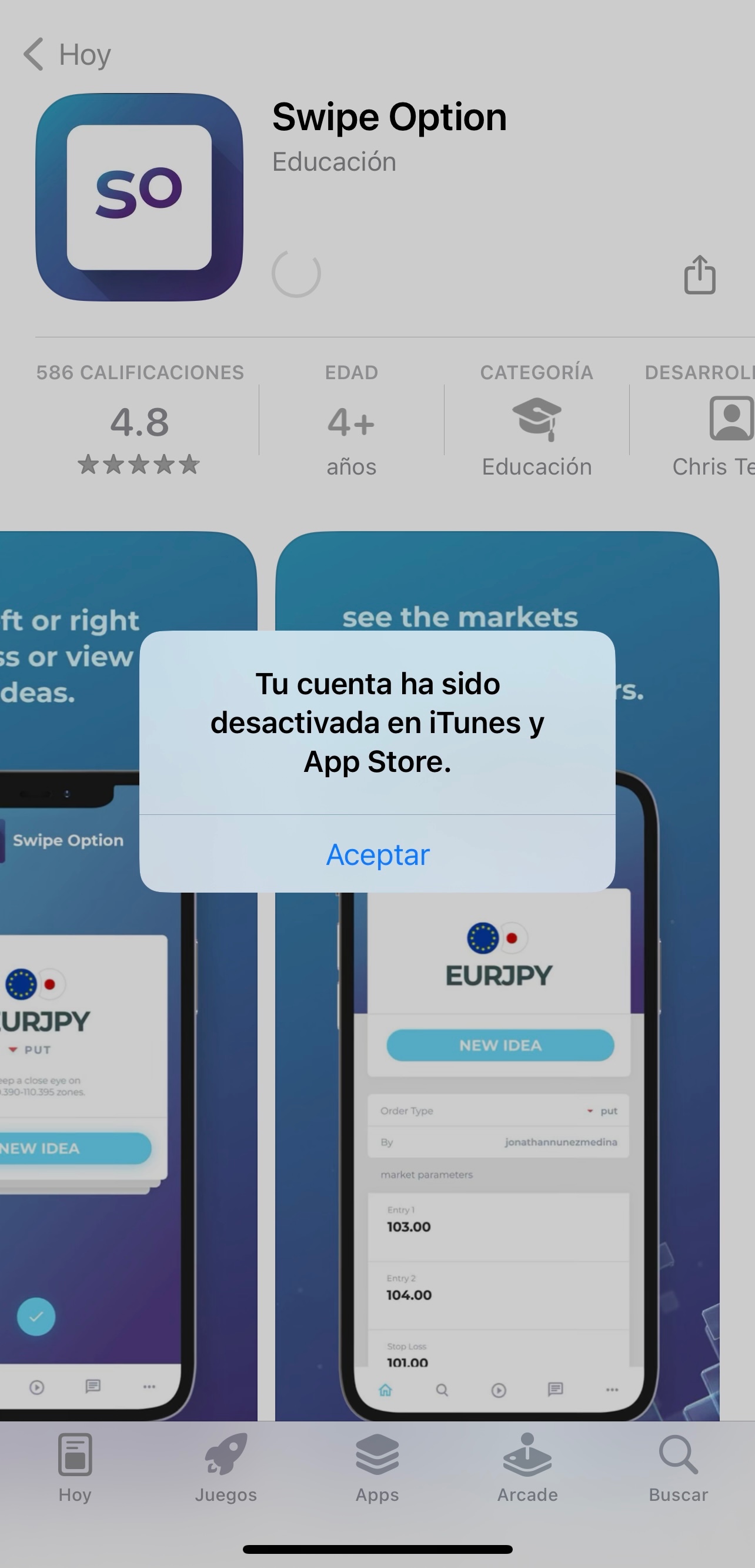 estaba Aburrida y quería descargar un juego para divertirme y de repente salió un texto en la pantalla que mi cuenta a sido desactivada en iTunes y App Store