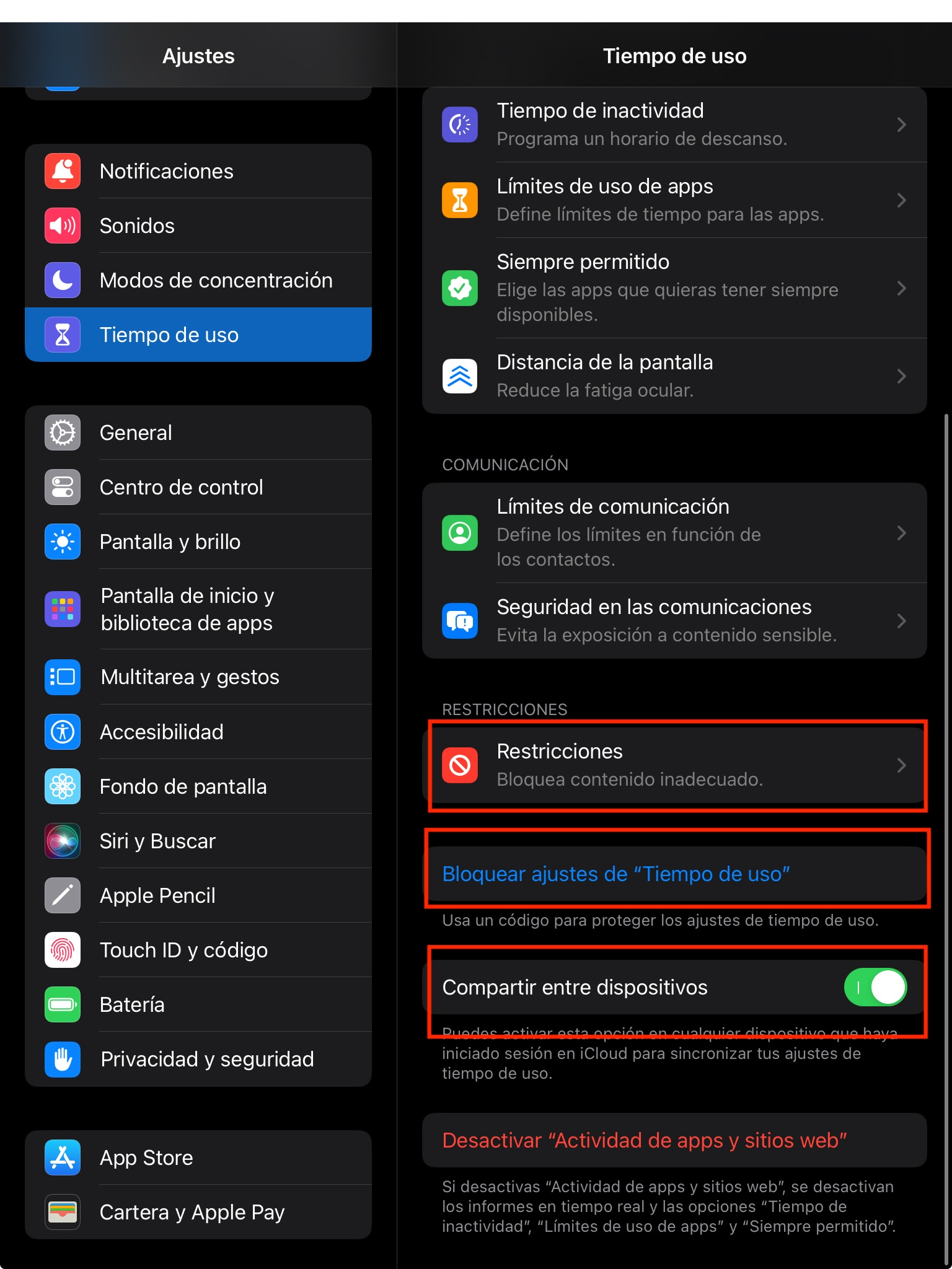 - Accede a Ajustes > Tiempo de Uso