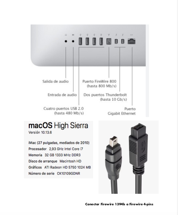 Es posible usar los puertos Thunderbolt o USB-C de los ordenadores Apple para conectar dispositivos que solo tienen puertos FireWire (1394).