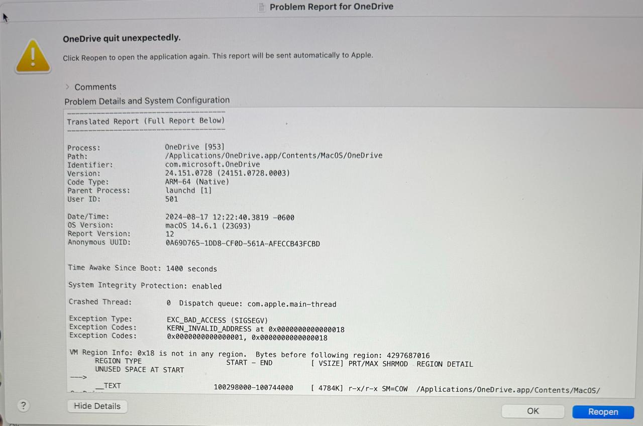 Intenté instalar la app de OneDrive en mi nueva MAC pero no me deja darme de alta con mi cuenta existente y me sigue saliendo la misma ventana para hacer login continuamente y no puedo ni firmarme ni desinstalarla. Cuando entro a "Finder" no aparece el drive de OneDrive conectado sino uno vacío