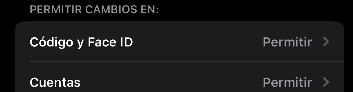tengo un iPhone 15 Pro Max versión IOS 17.6.1. Entro a tiempo en pantalla pero no me sale la opción que dicen para quitar la restricción y que aparezca el Face ID y Código.