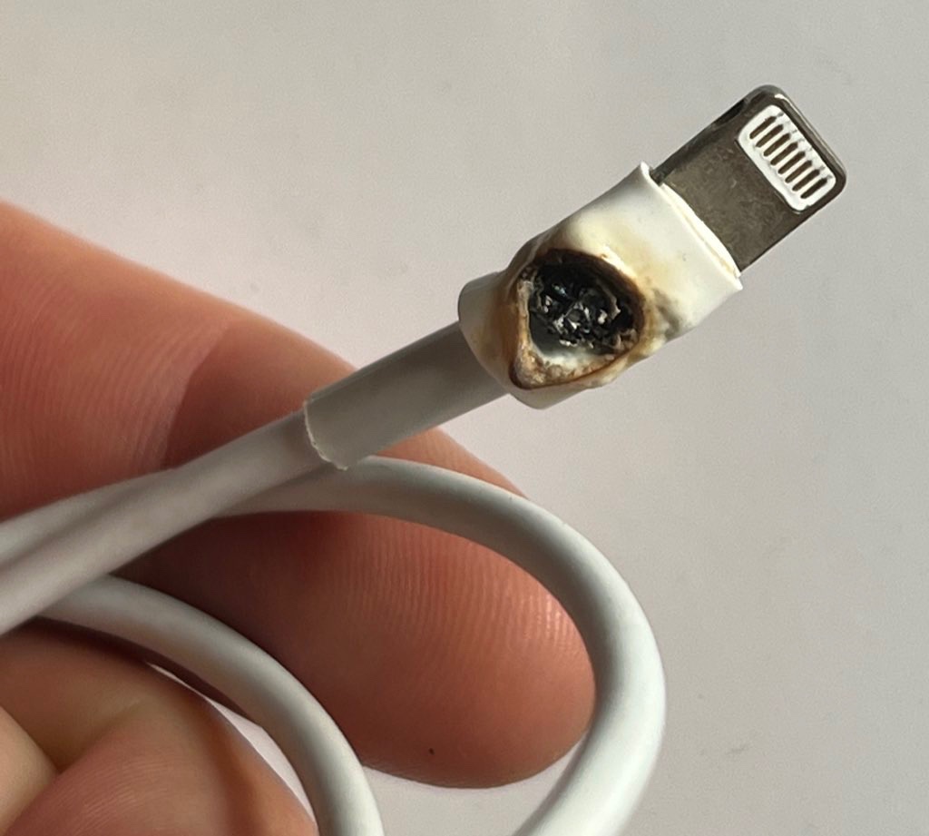 el otro día puse el iPhone 13 Pro Max a cargar y al poco veo que el cable se pone rojo incandescente (estaba a oscuras ya iba a dormir) y empieza a echar humo. Por suerte reaccioné rápido y desconecte el cable. Aún así dejo una quemadura en la mesita de noche ( si no llego a estar pendiente quizás sale ardiendo o casa). Ahora me da miedo cargar el iPhone.