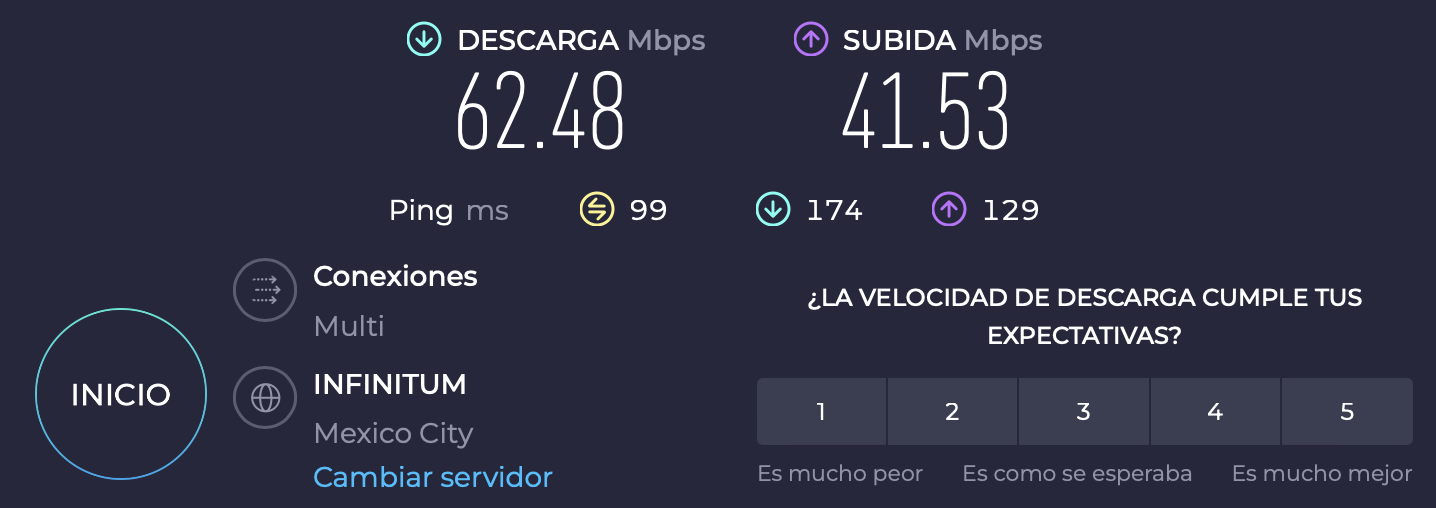He testeado mi red de internet y está operando de manera normal, velocidad estable de 60 Mbps. Así como el almacenamiento tengo disponible 400 GB.