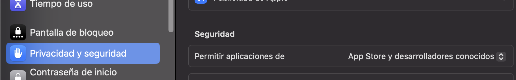 - Entrar en Ajustes del Sistema --> Privacidad y Seguridad y dar Abrir igualmente