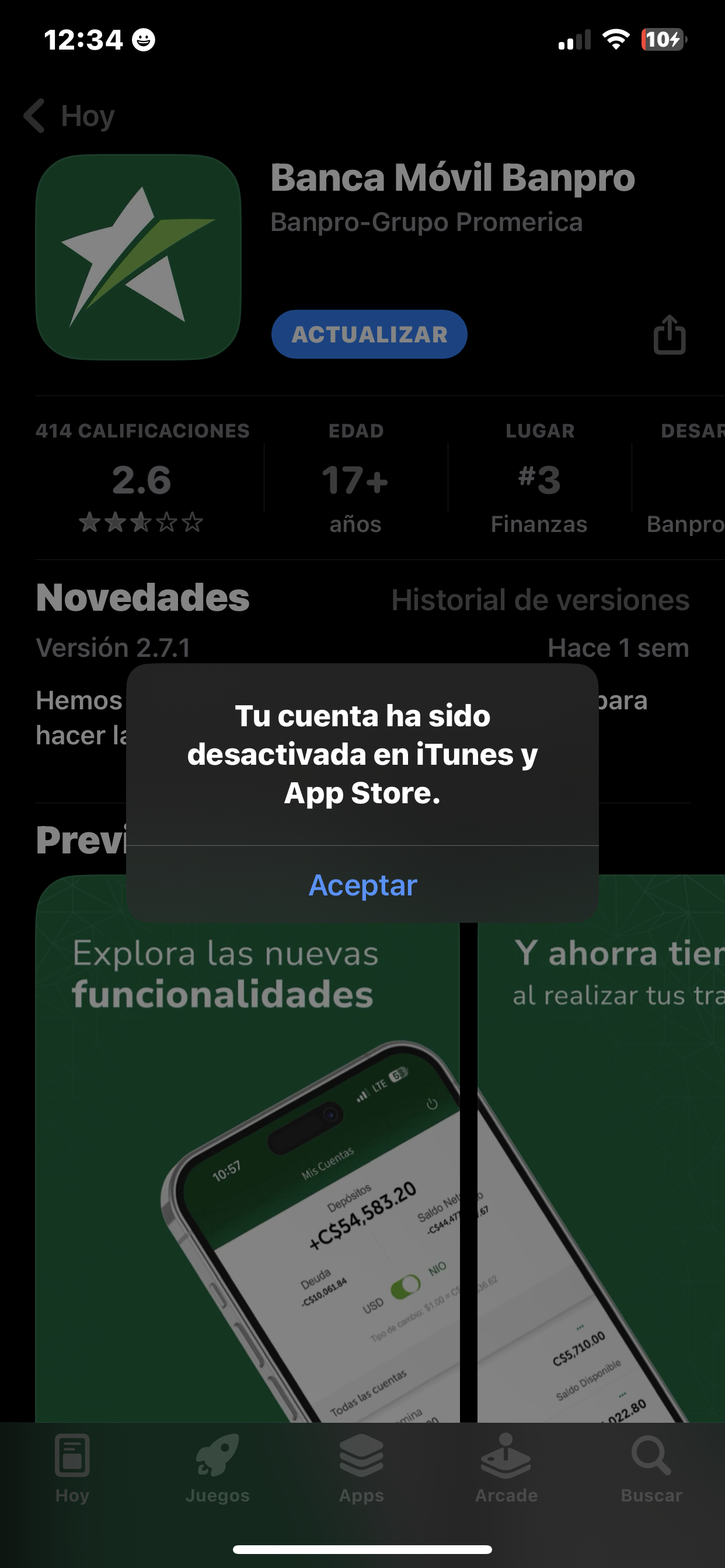 • Si ves un mensaje que dice “Tu cuenta está desactivada en App Store e iTunes”, es una señal de que necesitas contactar con Apple.