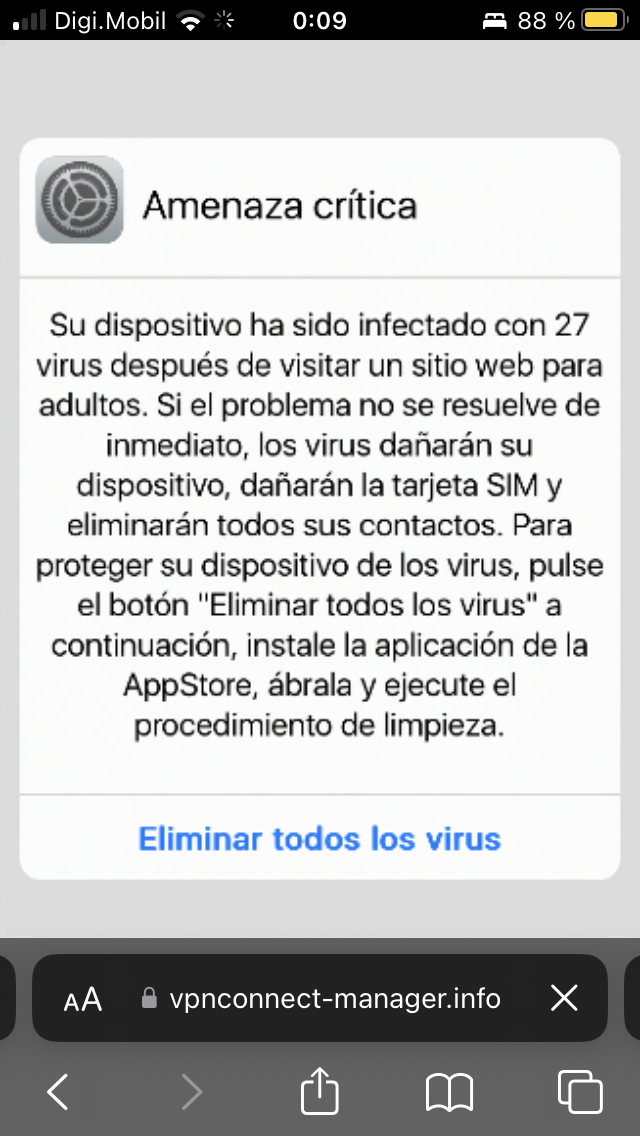 Esto es real o no porque no no entro a ninguna página web de adultos empezando que soy menor de edad y de que está muy mal aparte si iPhone es imposible de infectar pero por si acaso mejor hablar con Apple por favor díganme si esto es real
