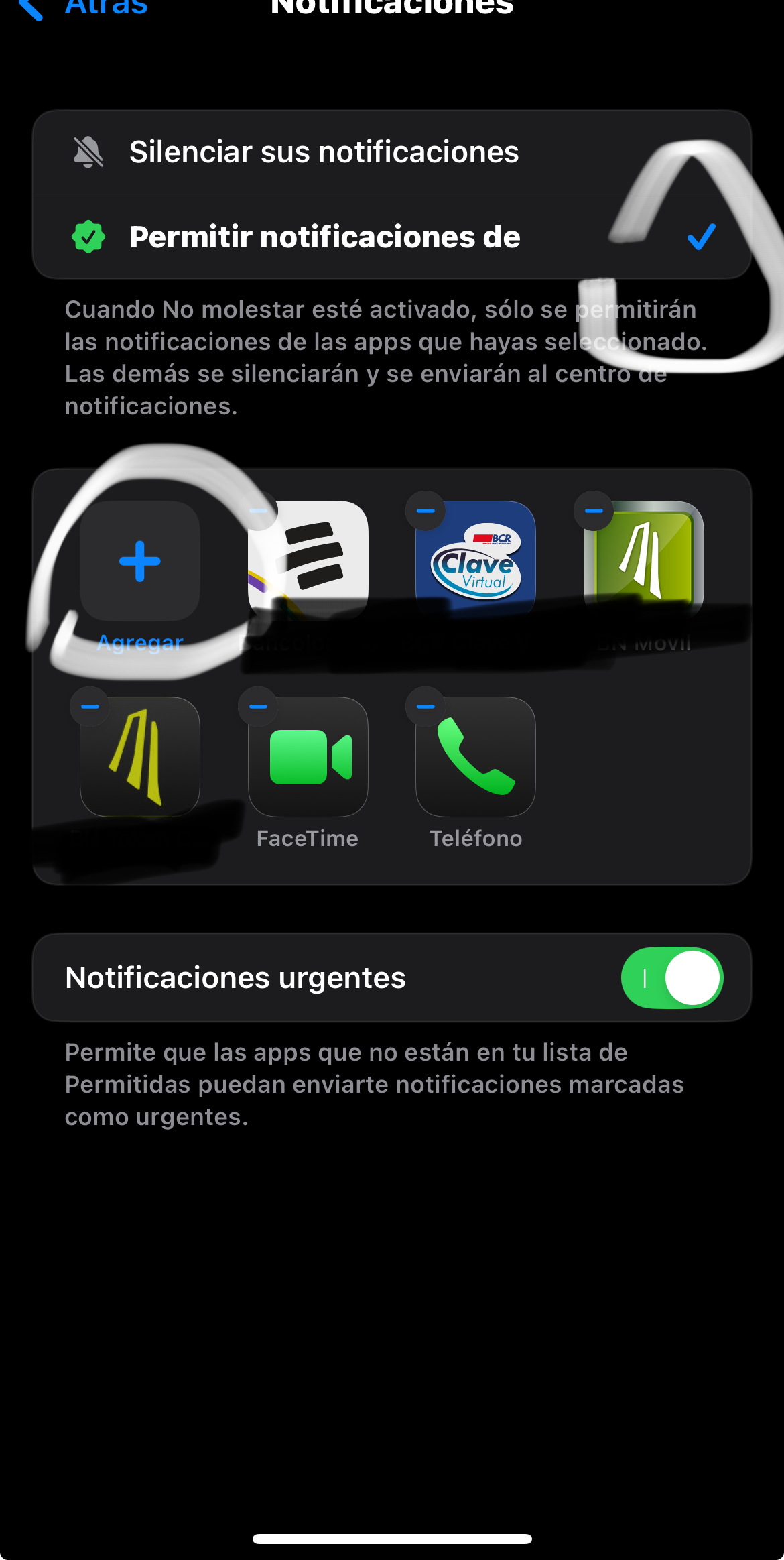Modo concentración, no aparecen apps para silenciar o permitir