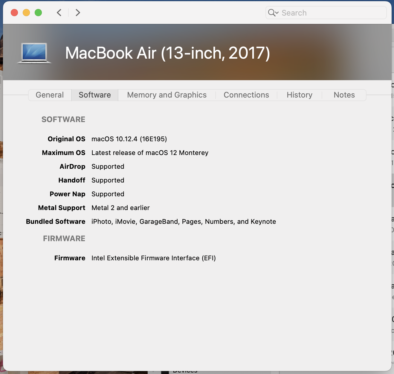 También revise y Monterrey es el sistema nativo final de ese modelo, perdone, es que me confundí antes pues yo uso una MacBook Pero 2017 y pensé la Air terminaba igual pero revisando en la app Mactracker veo que termina su modelo en Monterrey.