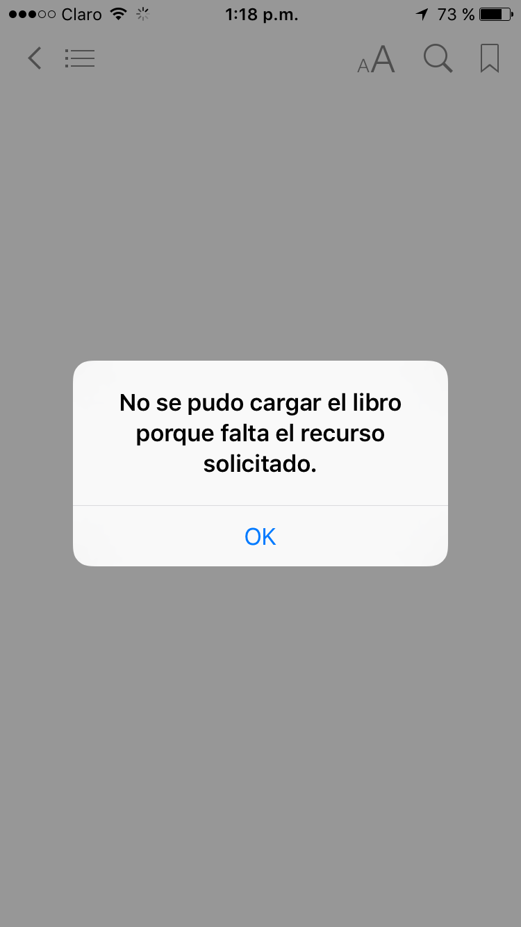 Hace poco compre un libro en formato ePub, pero en mi iPhone 6S no puedo leerlo, al intentarlo abrir me devuelve el mensaje "No se puede cargar el libro porque falta el recurso solicitado"