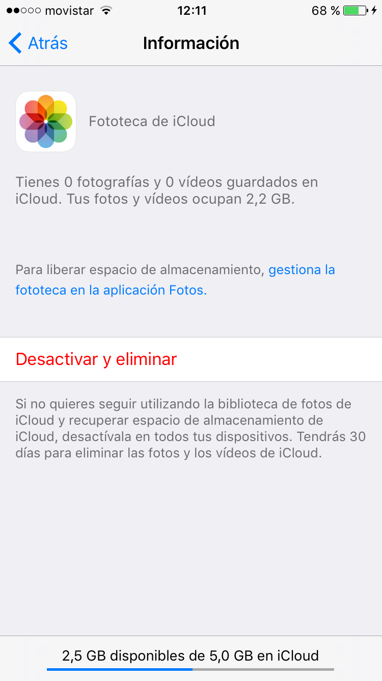 Tengo problemas con la fototeca de icloud ya teniendo 260 fotos me ocupaban mas de 3,1 gigas en icloud. He desactivado la fototeca en mi dispositivo para posteriormente eliminar todos las fotos a través de la web de icloud.com. Al borrarlas me pone que tengo 0 fotos y que ocupan 2,2 gb...¿¿como es eso posible?? Las he borrado totalmente, incluso en borradas recientemente. ¿Alguna explicación? ¿Como puedo hacer para borrar completamente todas las fotos que hay en icloud? Ya que por mas que me meto en icloud.com me aparece que tengo 0 fotos y 0 videos