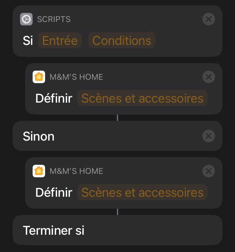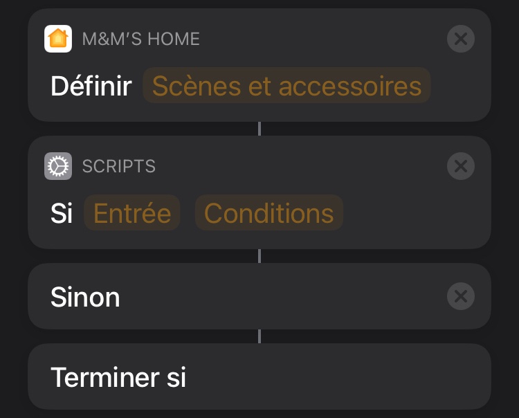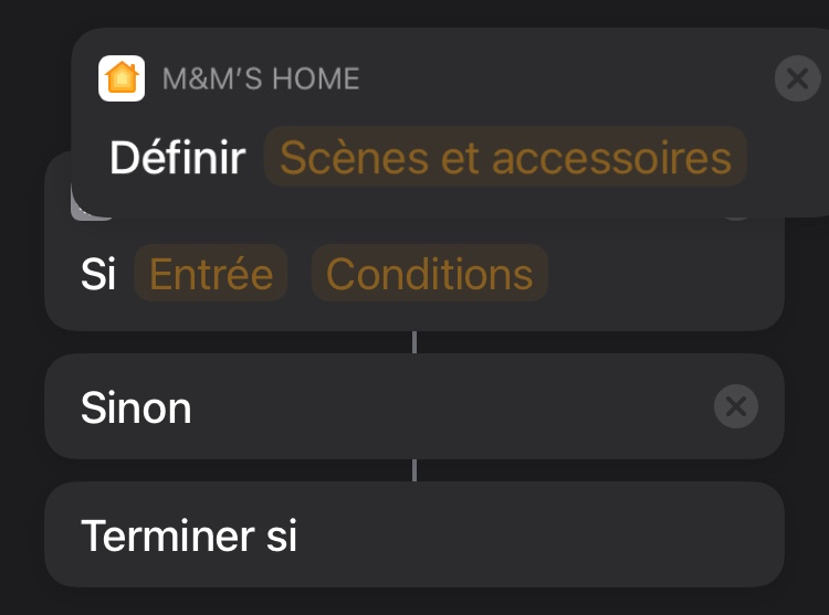 C'est une version allégée de l'app Raccourci, il s'agit de programmer des scripts avec des conditions, des minuteurs, d'utiliser des paramètres qui ne sont pas utilisés d'habitude comme la luminosité ou l'humidité d'un capteur, pour déclencher des accessoires, des scènes ou d'autres choses encore.
