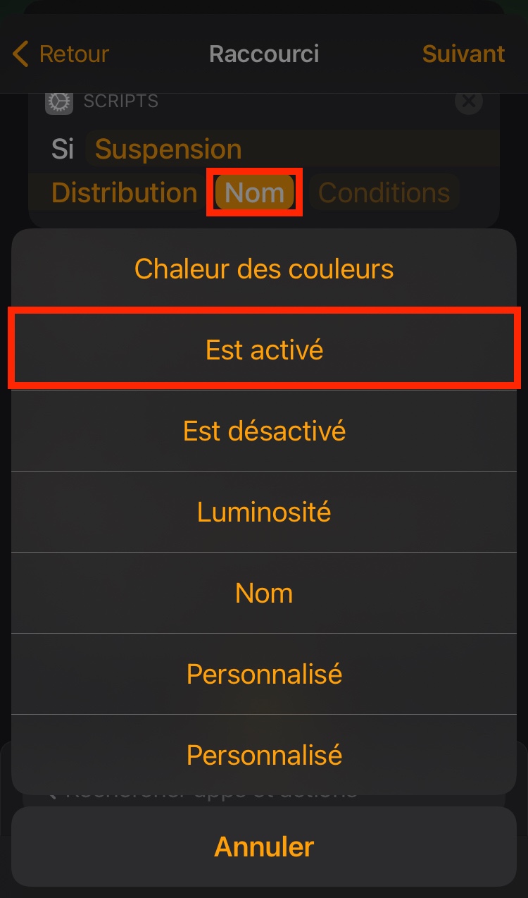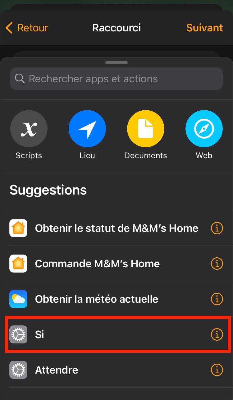 A partir de là, les connaisseurs de l'app Raccourci reconnaitront quelque peu l'interface :