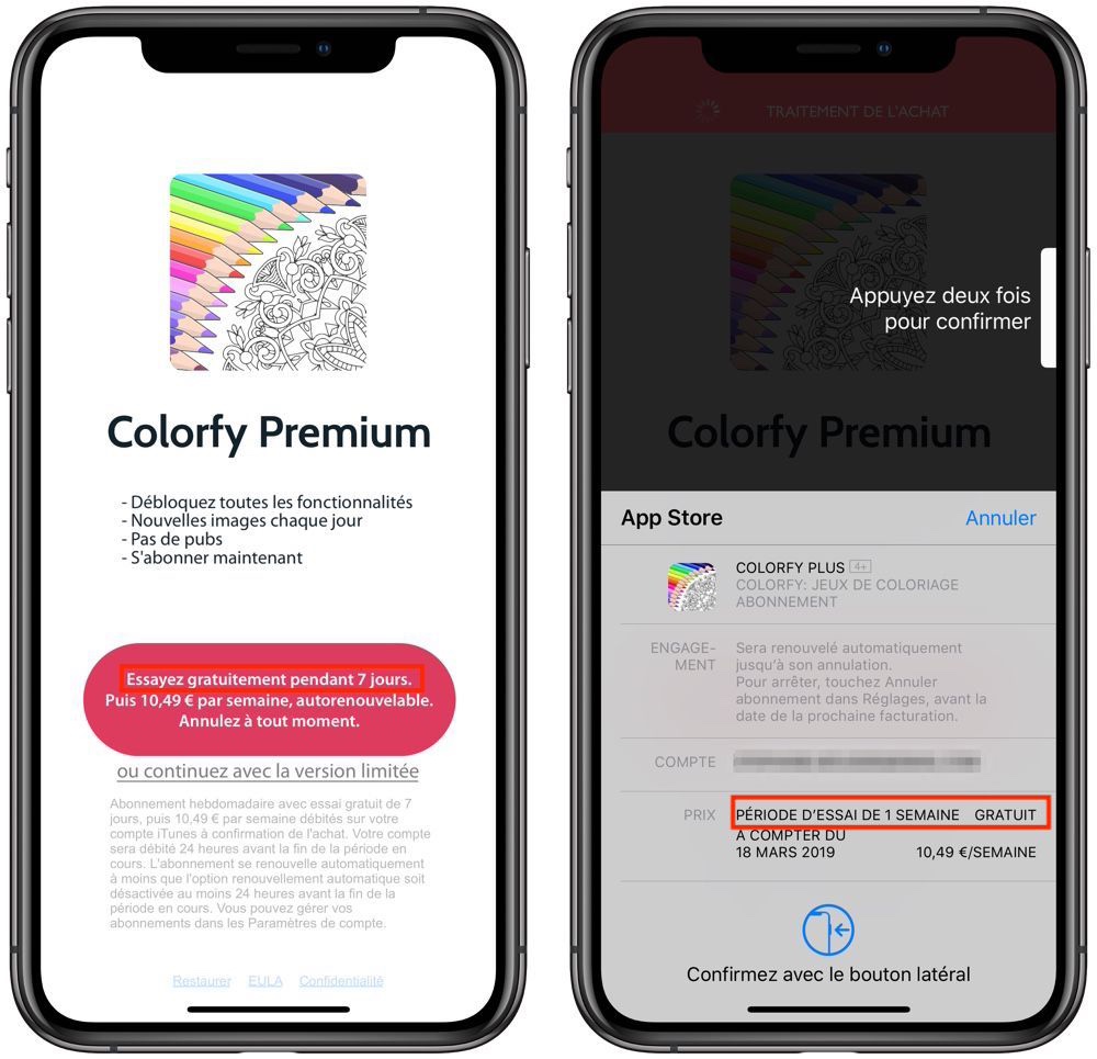Si une application vous propose un essai gratuit, cela sera marqué lors de la souscription à l'abonnement. Vous aurez donc juste à effectuer la souscription.