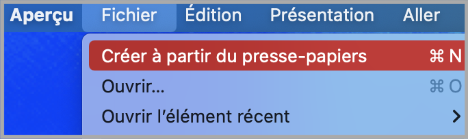 Lancez l’application "Aperçu", cliquez sur "Fichier" et sélectionnez "Créer à partir du presse-papiers"